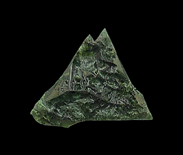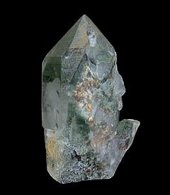 Q-628 Quartz with Chlorite inclusions $50 Schin gorge, Grisons, Switzerland 6.5 x 3.9 x 2.4 A translucent crystal of quartz that showing inclusions of dark-green chlorite that has been overgrown with clear quartz.